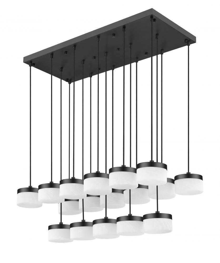 Stretching in a precise grid above the table, this matte black linear multi-light LED chandelier arranges frosted glass shades in two rows beneath a slim rectangular canopy for a striking architectural gesture. Running on integrated LEDs, the fixture throws confident, even illumination across long surfaces so family dinners, homework sessions, and weekend projects all feel well illuminated.