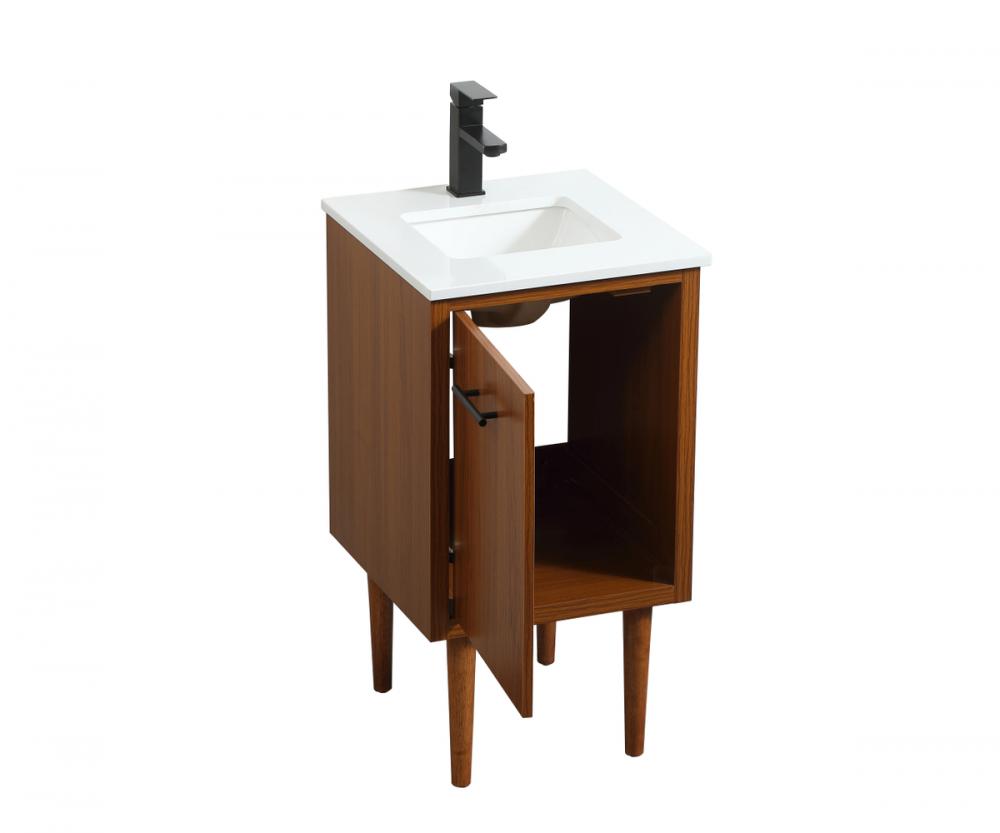 Delve into a world of minimalistic fashion and contemporary styling with this midcentury modern vanity. The clean lines anchors the design, while the straight tapered cylinder legs add subtle interest. Bar pull handle adorns the soft closing door hiding the base of the rectangular porcelain sink and letting you store your bathroom necessities and toiletries. The compact size makes it the perfect vanity for any bathroom or powder room, regardless of size. Whether you want to use this as a floating vanity or a freestanding vanity, the choice is yours. The durable ivory white engineered marble countertop complements the manufactured wood base vanity and is built to last.