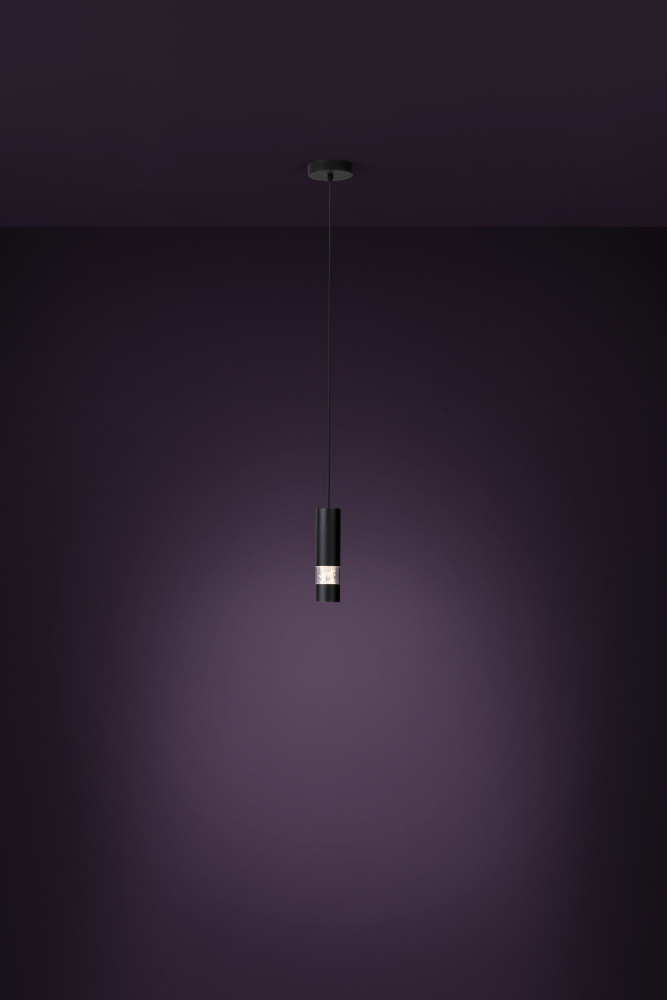 1 LT LED Mini Pendant w/ Black Finish & Black Cylinder Shade w/ Clear Seeded Diffuser