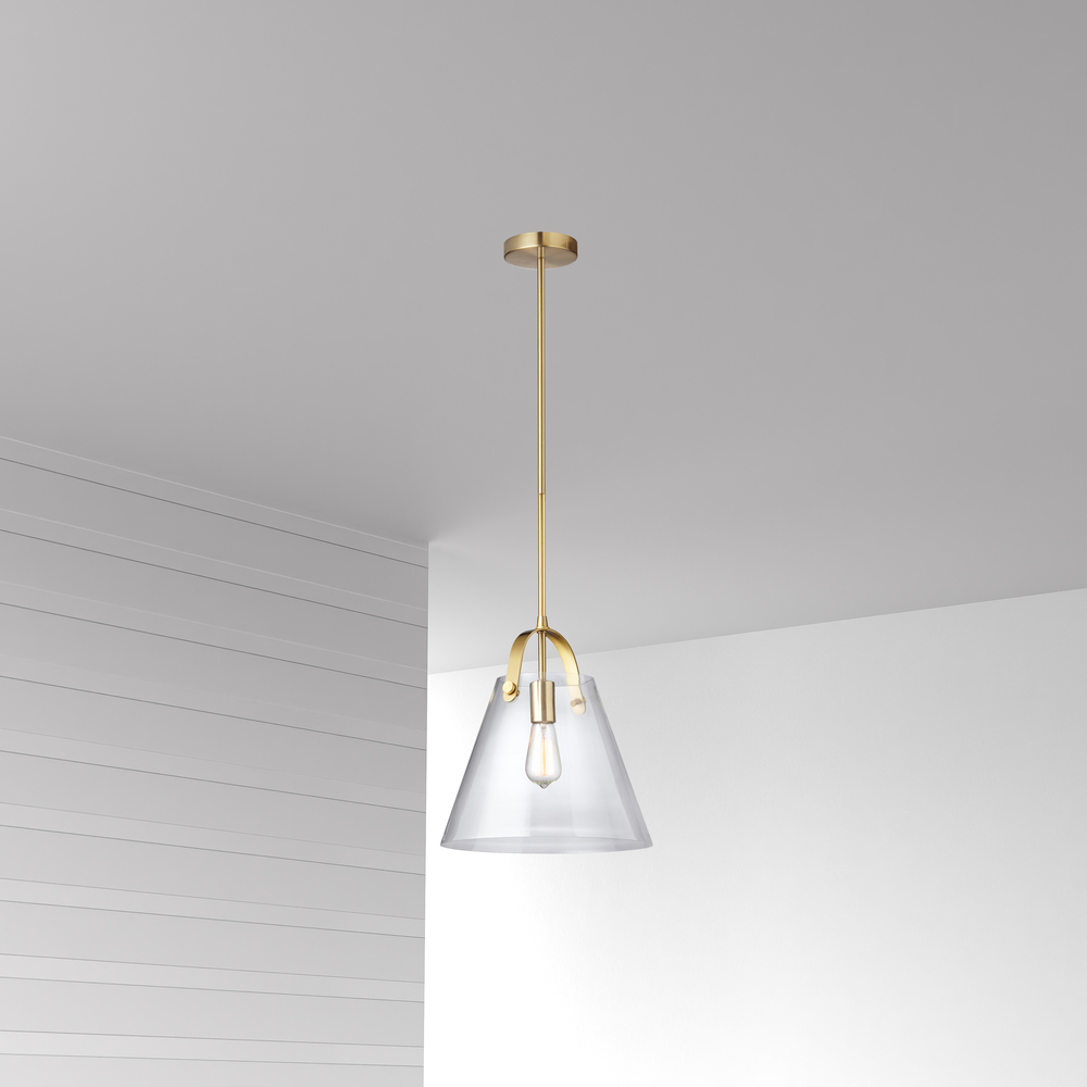 The Polly family of lighting acts like a spotlight that will draw attention to the furnishings in its vicinity. It features an intriguing design with a modern sheen. The metal frame in your choice of finish drops straight into a glass housing with a tapered drum shape. A metal arm curves upwards towards the drop to complete a triangular outline. Along with the metal finish, different bulb shapes create multiple looks. The unusual profile and gleaming surfaces make it a stylish addition to foyers, kitchens and dining rooms.