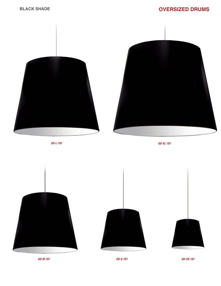 Oversized Drum lighting offers a look that can't be ignored, but is simple enough to blend in with strong modern and contemporary décor schemes. Clean lines and an elegant shape give it a luxurious appeal. A simple metal drop and/or frame is dominated by a large fabric drum shade. Options include both monochromatic designs, and contrasting inner/outer shades for a more dramatic effect. With so many options and configurations from floor to pendant lighting, Oversized Drum lighting is the ideal way to unify the look of a modern home.