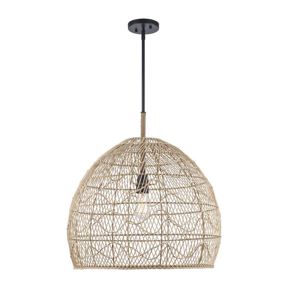 1LT PENDANT RATTAN WAVE 23"-BK