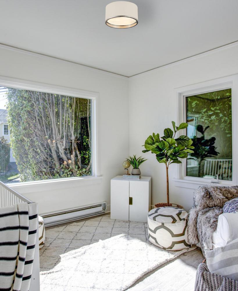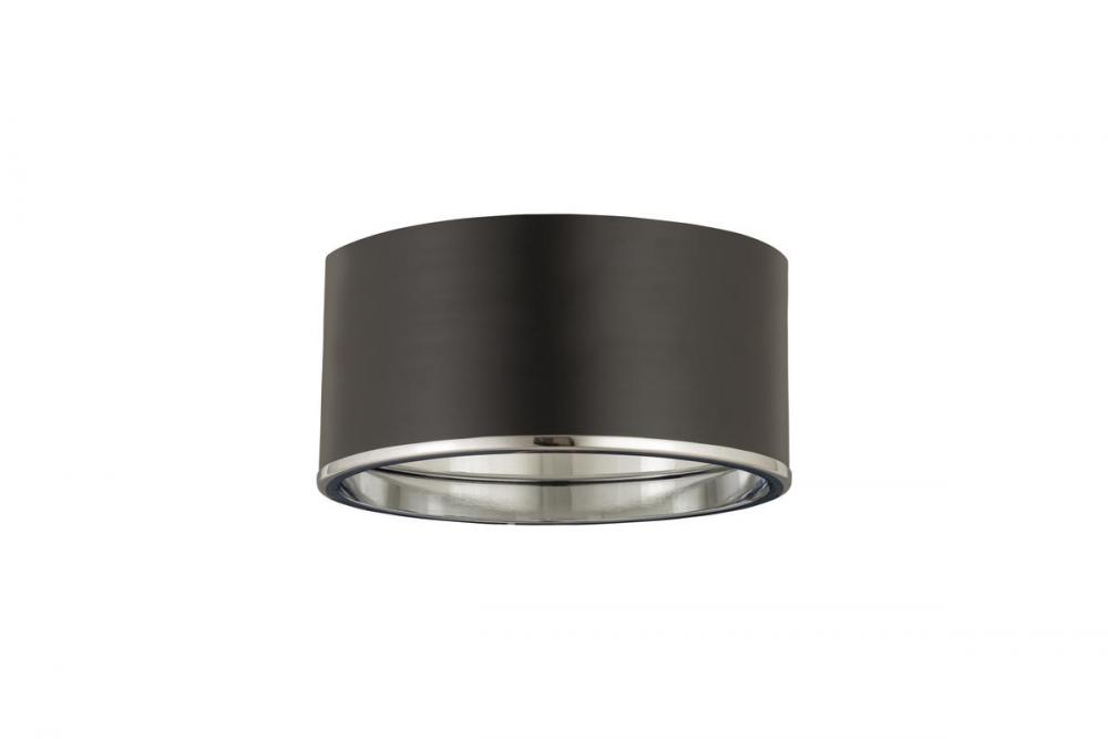 This two-tone metal flush mount light presents a sleek and smooth impression. Perfect for a hallway, home office, or small foyer, this matte black flush mount light with chrome trim is simplistic yet stylish.