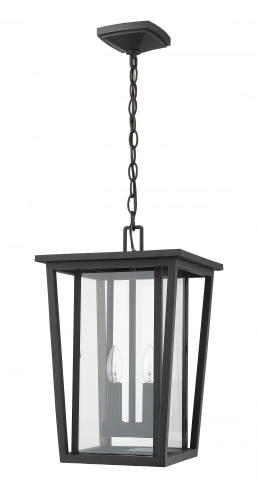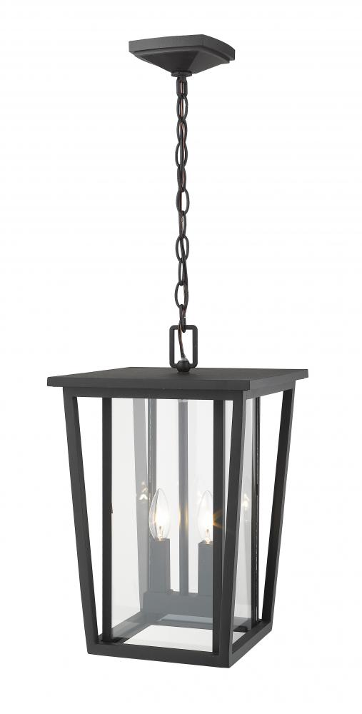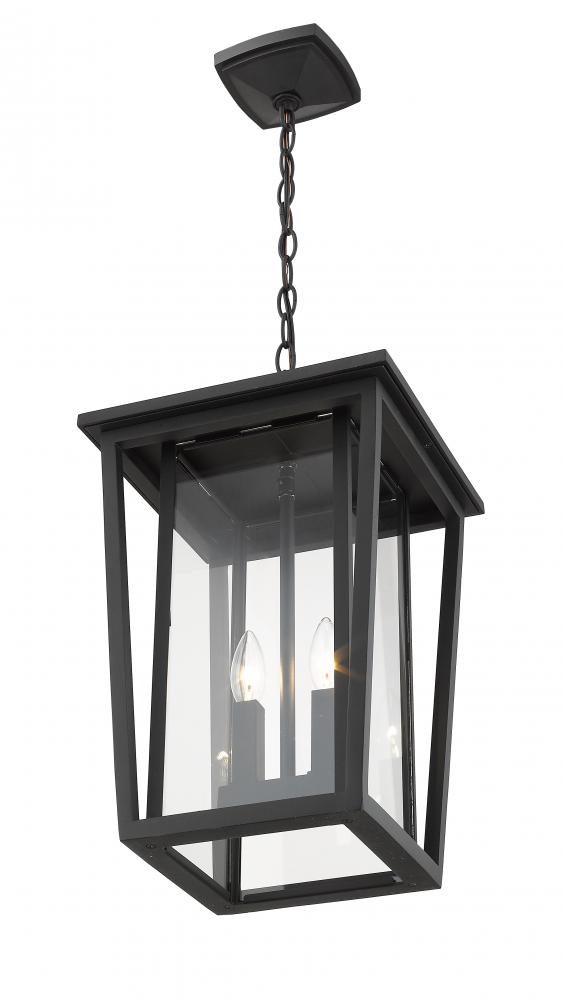 Make a deck area everything it can be as you offer ambient lighting for guests. With a sleek black finish, this hanging lantern outdoor light brings a softened geometric silhouette with clear glass and a candelabra bulb base.