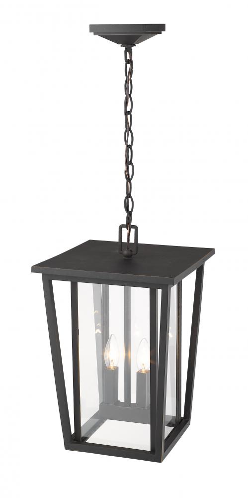 Refresh the look of a gazebo or outdoor patio. This hanging lantern delivers a lush look to an outdoor space with an ornate, intriguing design and a cool rubbed bronze finish frame nestling clear glass.