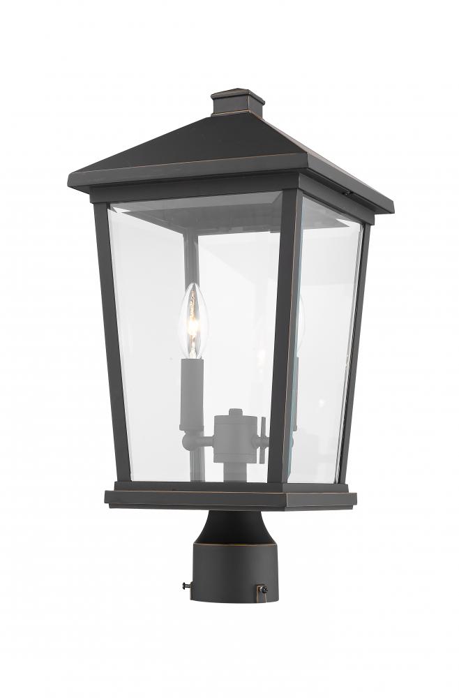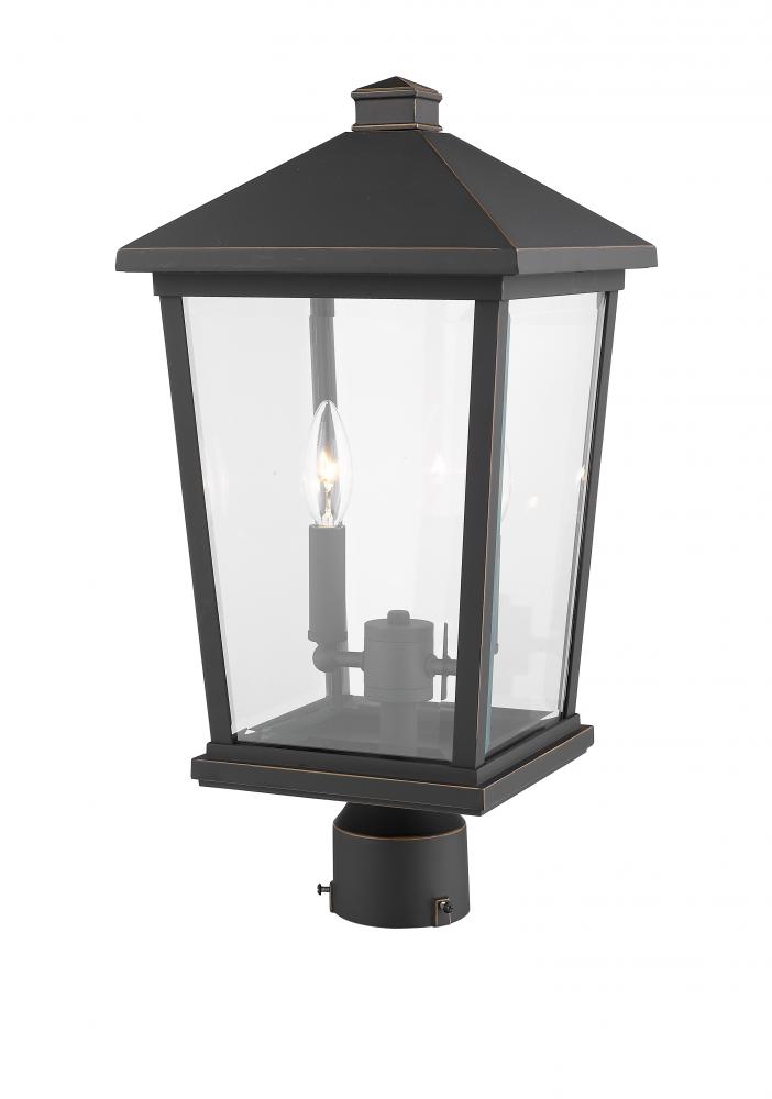 Attention to detail yields a tasteful look in this traditional post lantern light. Top a tall or short base with this elegant light that features a warm rubbed bronze finish and a clear beveled glass shade.