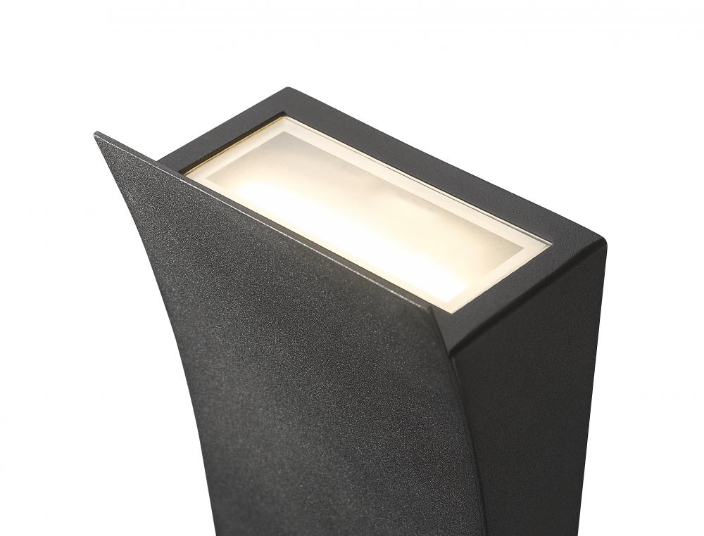 This contemporary two-light outdoor wall sconce illuminates your open space beautifully, using LED-integrated technology to provide energy-efficient light to your patio, deck or other outdoor areas around your home. Made from black aluminum in a black sand blasted finish, its bold, industrial look adds streamlined chic to your surroundings.