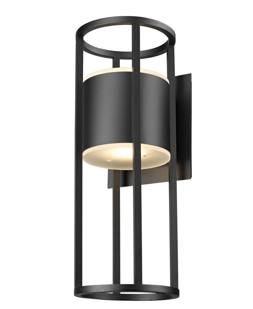 Engaging industrial style turns a bit soft and romantic with extra design details for outdoor use. This two-light outdoor wall sconce from the Luca series offers an openwork cylinder frame and wall plate featuring black aluminum with an etched glass diffuser. LED lighting offers energy efficiency to embellish its value.