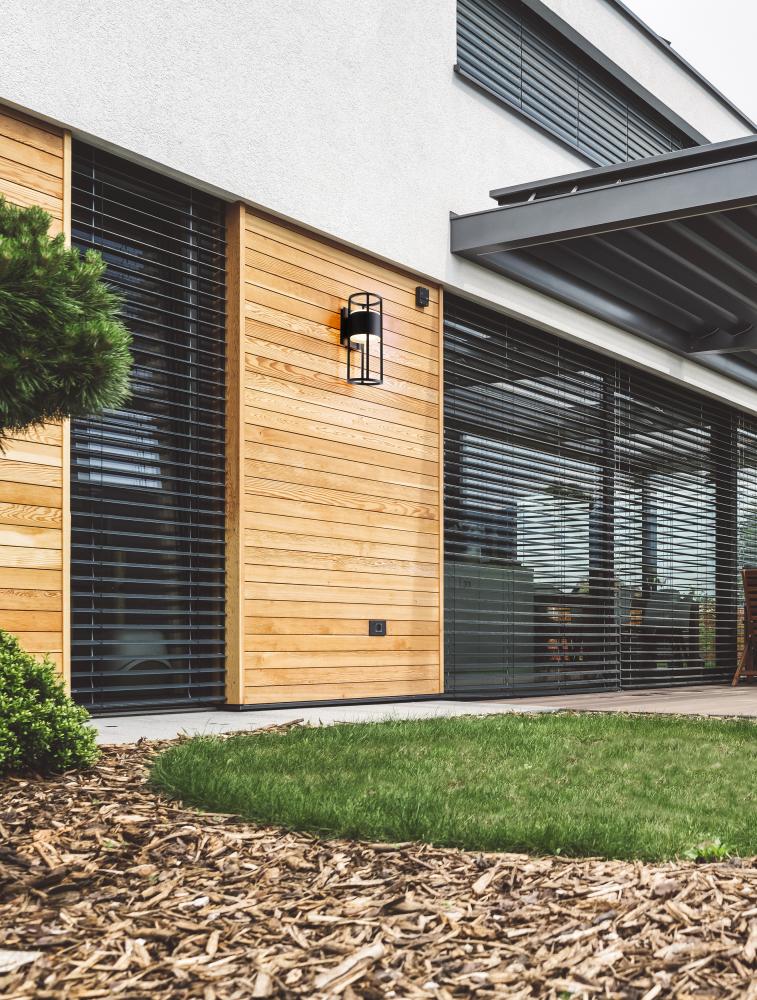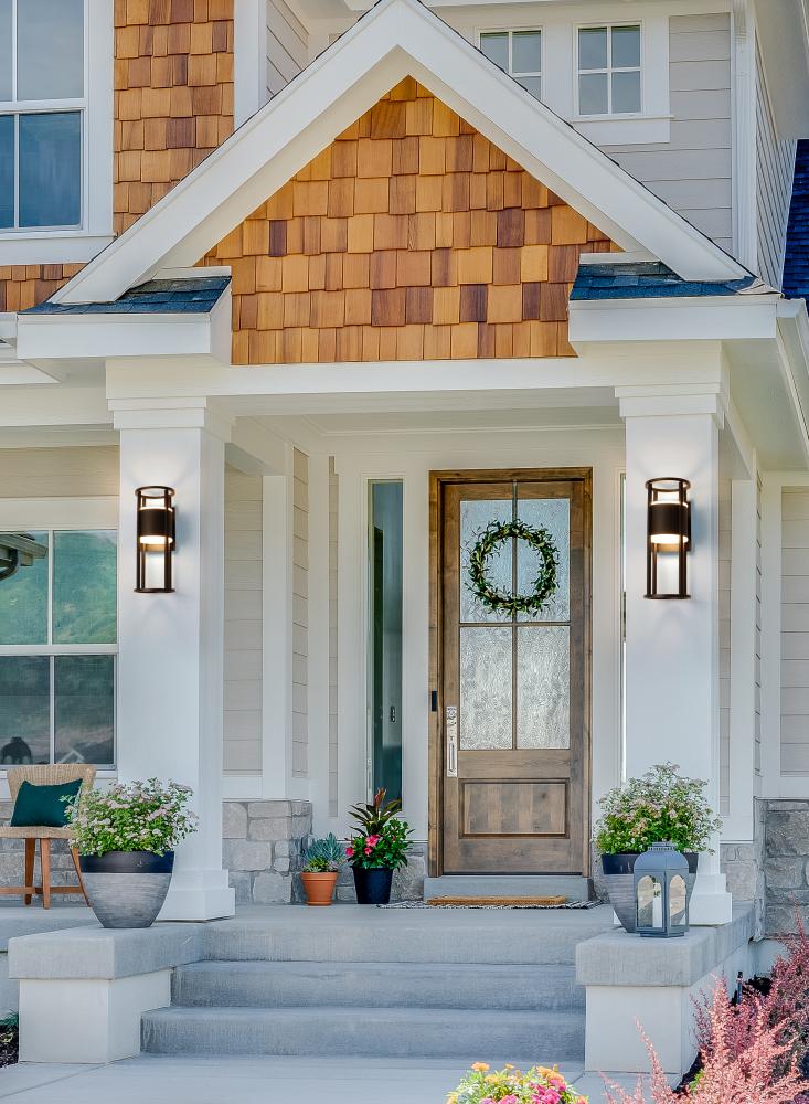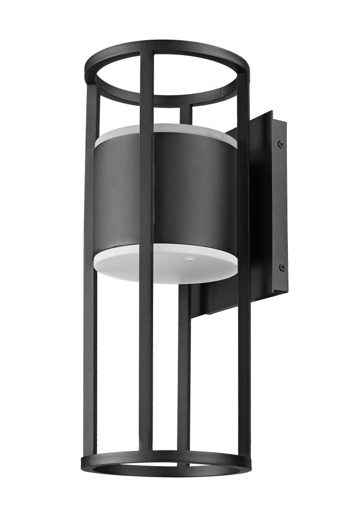 Dramatic geometric minimalism goes bold with an exterior light perfect for elevating a residential structure. This two-light outdoor wall sconce from the Luca series offers an openwork cylinder frame and wall plate featuring black aluminum with an etched glass diffuser. LED lighting offers energy efficiency to embellish its value.