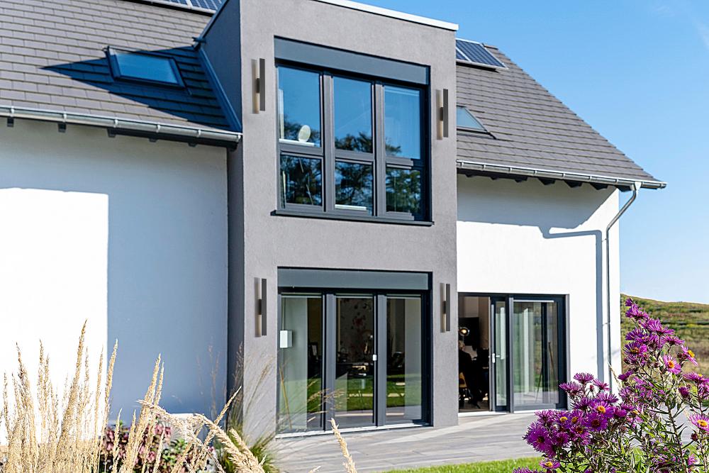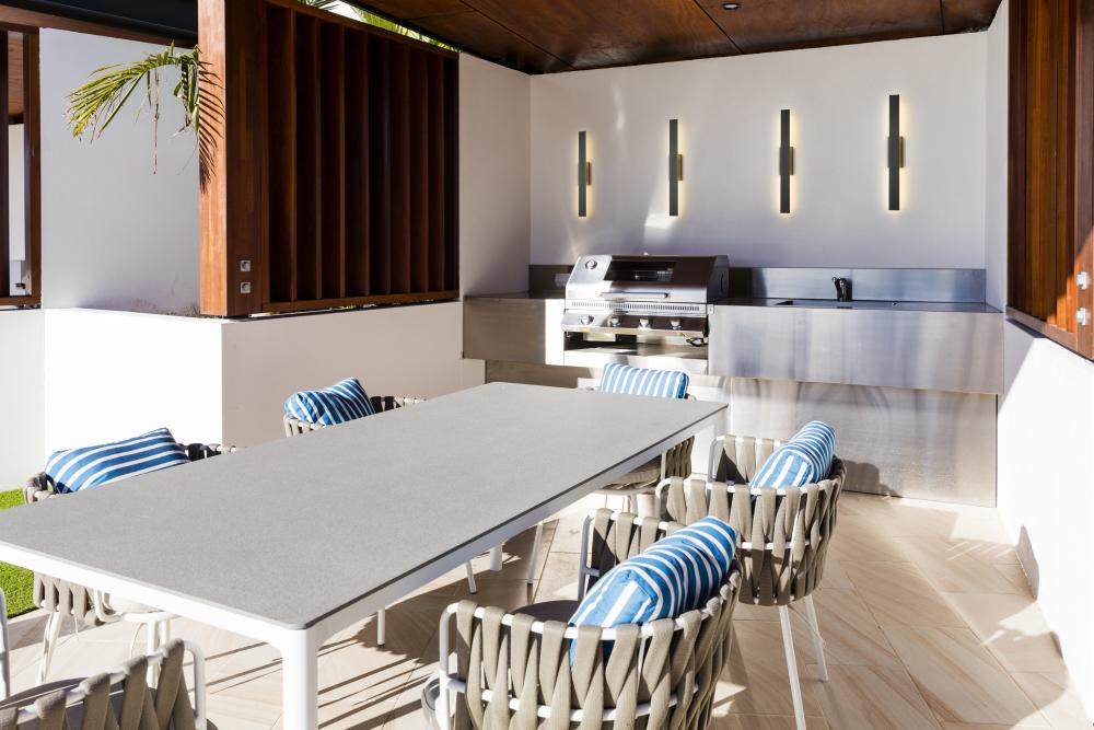 Cast a rich glow with the indirect illumination and wall-wash effect created with this modern two-light outdoor wall light. Its facing receives a textured, marine-grade sand black finish to highlight a sleek, slim silhouette complete with sharp corners and clean lines. From behind, light glows from energy efficient LEDs through a white diffuser for the perfect lighting in every setting. This fixture offers selectable color temperature with five options ranging from 2700K to 5000K for the perfect ambiance.