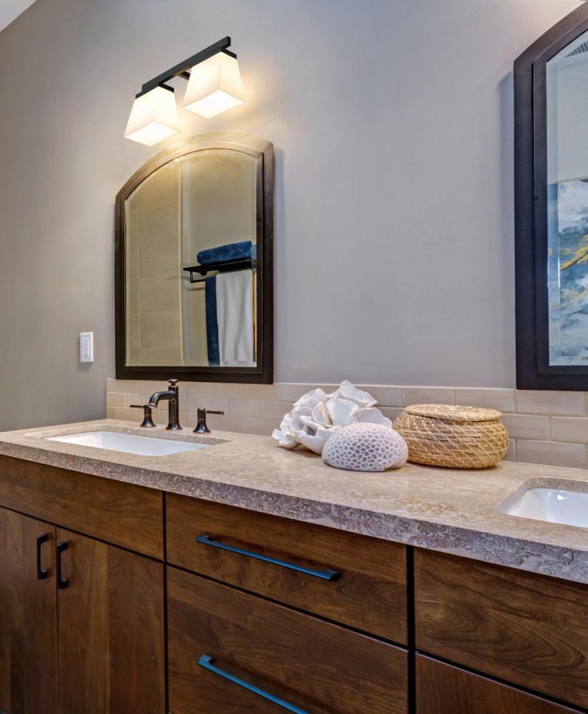 A modern farmhouse fixture with sleek lines, this two-light vanity boasts an etched opal glass shade. The fixtures steel construction is finished in matte black for a harmonious display in your bathroom or hallway.