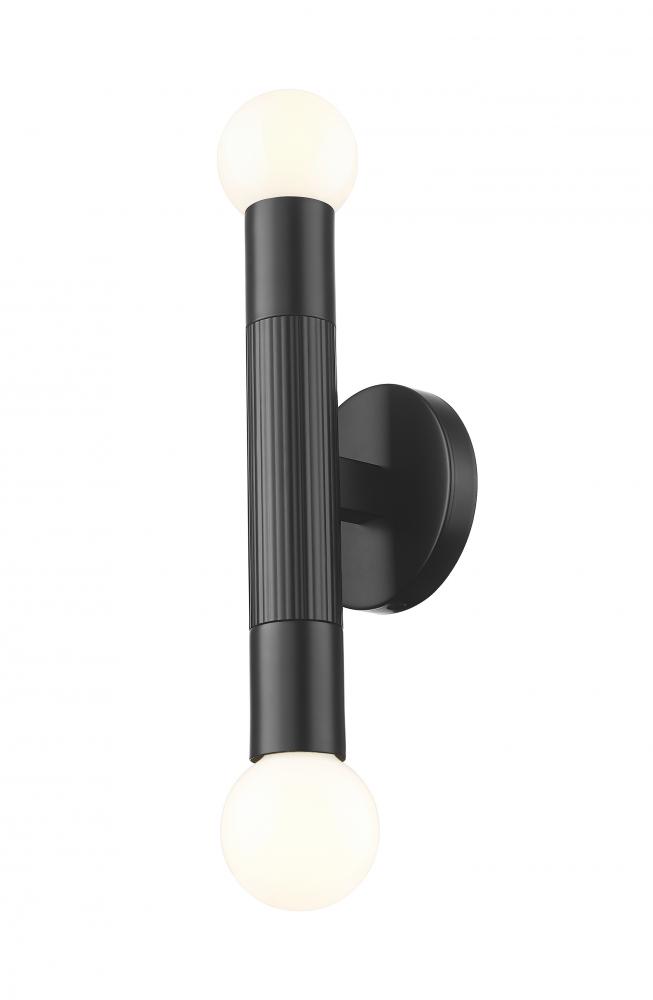 Two points of light meet a single, modern frame in this matte black sconce made for statement-making style. The perfect piece for framing mirrors or accenting long hallways, it?s a sharp and sophisticated lighting move.