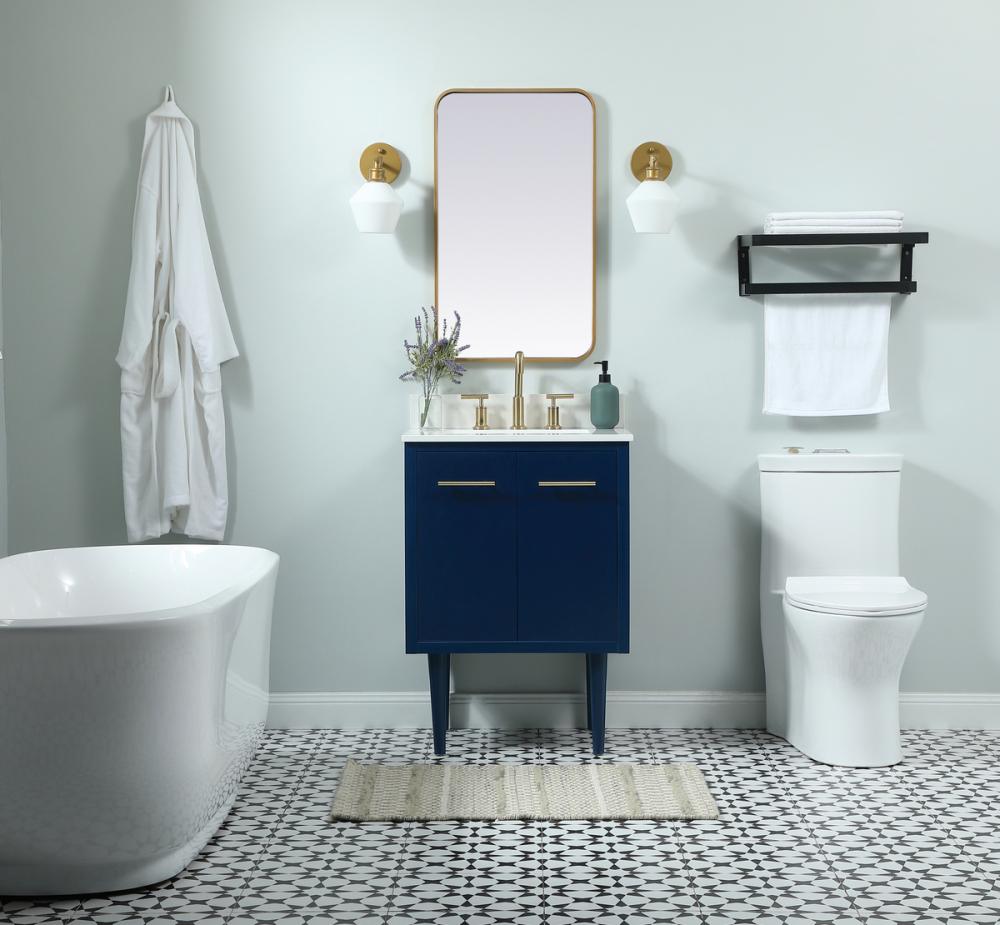 Delve into a world of minimalistic fashion and contemporary styling with this midcentury modern vanity. The clean lines anchors the design, while the straight tapered cylinder legs add subtle interest. Bar pull handle adorns the soft closing door hiding the base of the rectangular porcelain sink and letting you store your bathroom necessities and toiletries. The compact size makes it the perfect vanity for any bathroom or powder room, regardless of size. Whether you want to use this as a floating vanity or a freestanding vanity, the choice is yours. The durable ivory white engineered marble countertop complements the manufactured wood base vanity and is built to last. Comes with a matching backsplash to complete the look and protects your wall.