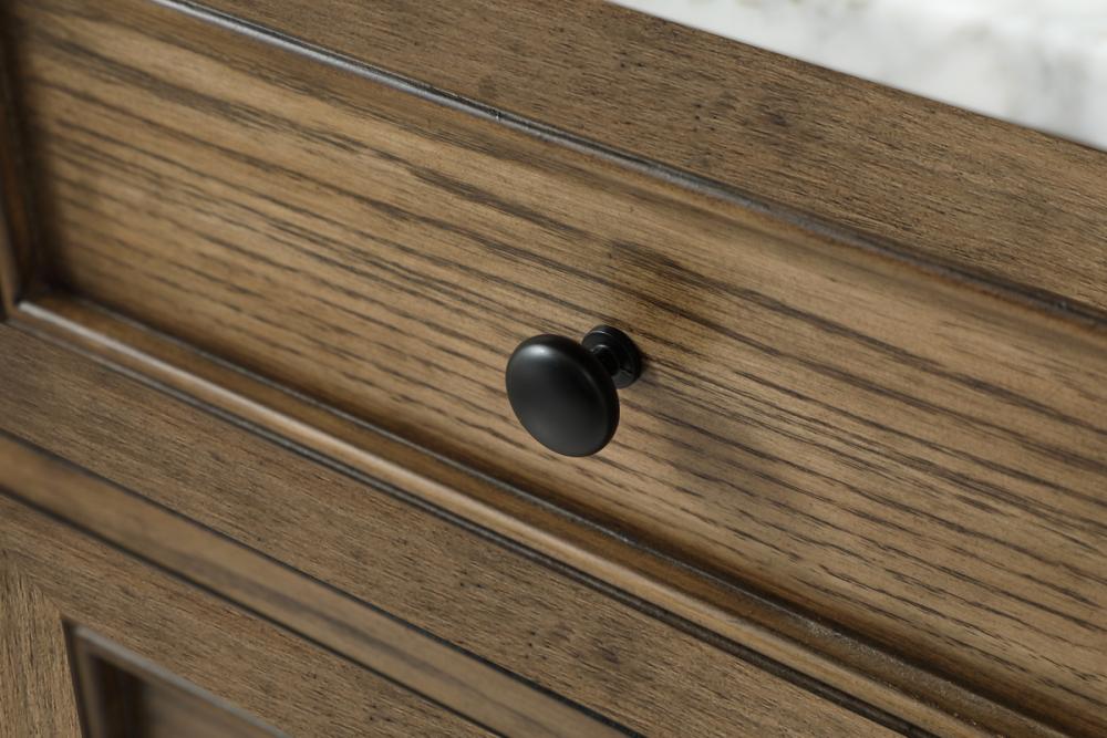 Clean lines and classic form can truly add a fresh look to your bathroom or powder room. This vanity, complemented by round hardware, will surely charm you with its confident style and subtle charisma. This vanity can store all of your bathroom toiletries, from extra towels to make up essentials. The vanity is crowned with carrara white marble and includes a porcelain undermount sink--adding both function and form that will truly amaze.