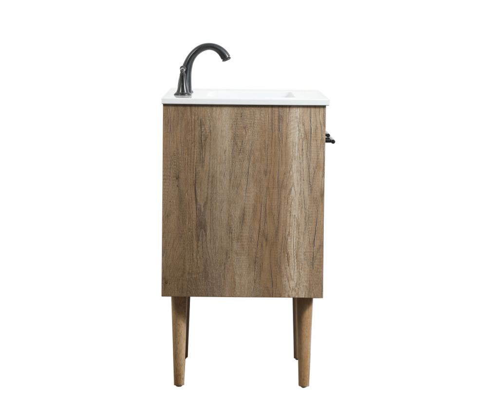 Delve into a world of minimalistic fashion and contemporary styling with this midcentury modern vanity. The clean lines anchors the design, while the straight tapered cylinder legs add subtle interest. Bar pull handle adorns the soft closing door hiding the base of the rectangular porcelain sink and letting you store your bathroom necessities and toiletries. The compact size makes it the perfect vanity for any bathroom or powder room, regardless of size. Whether you want to use this as a floating vanity or a freestanding vanity, the choice is yours. The durable ivory white engineered marble countertop complements the manufactured wood base vanity and is built to last.