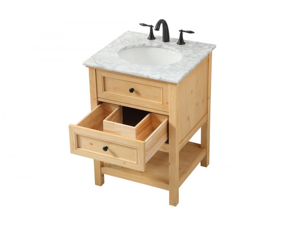 Clean lines and classic form can truly add a fresh look to your bathroom or powder room. This vanity, complemented by round hardware, will surely charm you with its confident style and subtle charisma. This vanity can store all of your bathroom toiletries, from extra towels to make up essentials. The vanity is crowned with carrara white marble and includes a porcelain undermount sink--adding both function and form that will truly amaze.
