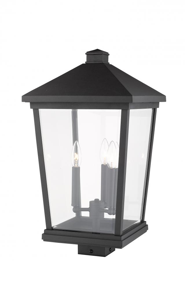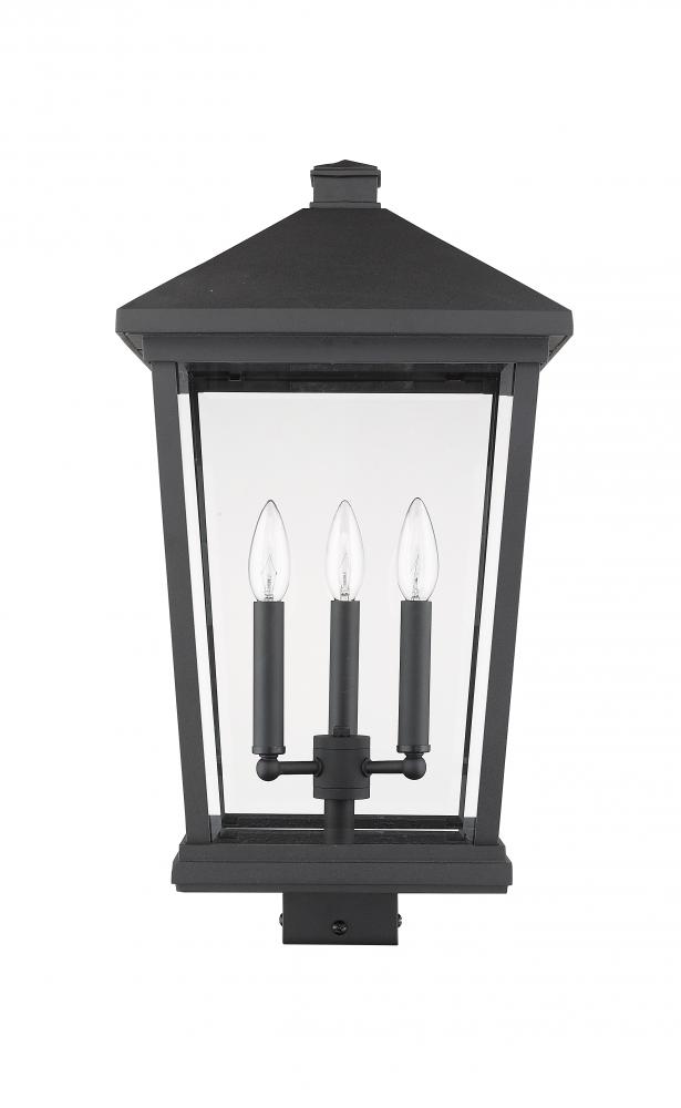 Soft and illuminating, this three-light post light is great for modern walkways and outdoor paths. Panels of glass nestle inside clean lines in a black hue.