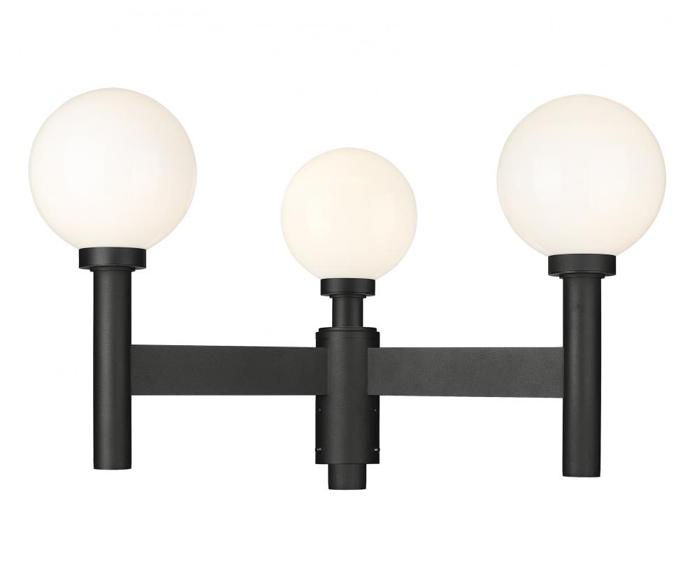A mix of old and new design elements plays the perfect card for exterior lighting with a fixture that gets noticed. The Laurent three-light outdoor post mount fixture offers a charming aesthetic with a contrasting palette and whimsical design. Crafted of black finish aluminum, its straight-line frame delivers stellar versatility and a sleek look. Three charming opal glass globes put a retro stamp with festive artistry on this outdoor fixture.