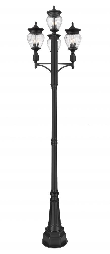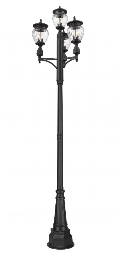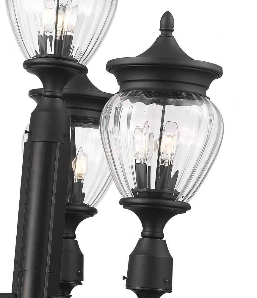 Set the tone for an inviting home exterior or garden space with the three charming teardrop glass shades featured on this 12-light outdoor post-mounted fixture. Steeped in vintage charm and character, it pairs distinctive glasswork with a black finish over aluminum to deliver durability to your homes exterior.