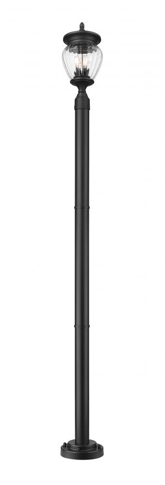 Asian inspiration slides into an artisan motif as this three-light outdoor post-mounted light delivers elegance and makes a statement. Perfect for updating your landscaping with dimmable lighting, this slender fixture is a full unit featuring an aluminum post and light frame made of Coastal black paint finish aluminum paired with teardrop ribbed glass that creates depth and dimensionality.