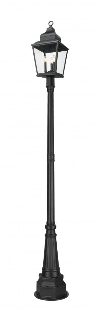 Enhanced with intricate detail, this three-light outdoor post mount fixture brings an elegant motif to front yards, walkways, and other exterior spaces. Soft sand black finish aluminum framing welcomes clear seedy glass panels offering an unobstructed view of charming candelabra-style bulb mounts, perfect for assembling a village-like motif. Dimmable lighting adds convenient adjustments of illumination levels for around-the-clock purposes.