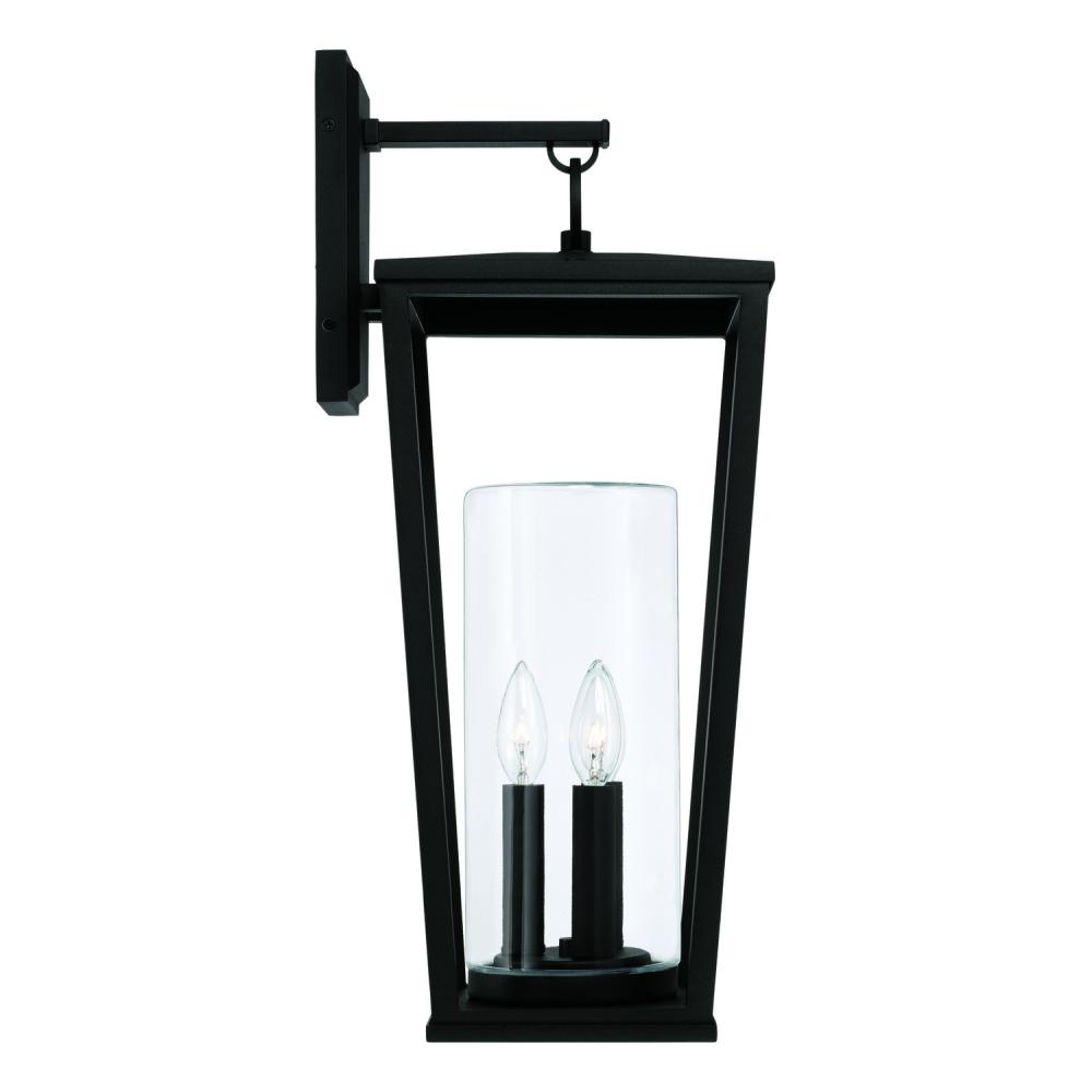 9.25"W x 23.75"H 3-Light Outdoor Wall Lantern in Black with Clear Glass Cylinder