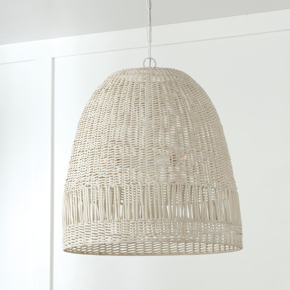 24"W x 26.75"H 3-Light Pendant in Chalk White with Hand-Woven Painted Rattan Basket