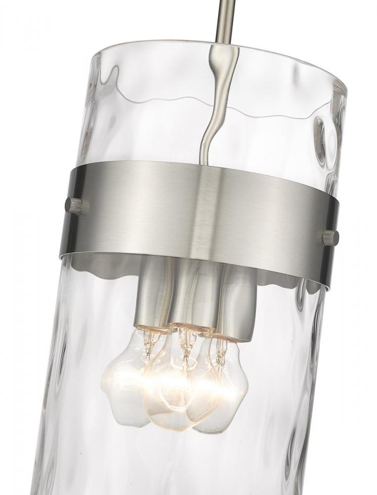 Three cheers for a three-light pendant light that adds chic appeal to kitchens and more. The steel frame boasts a brushed nickel finish while a rippled glass shade offers extra visual interest.