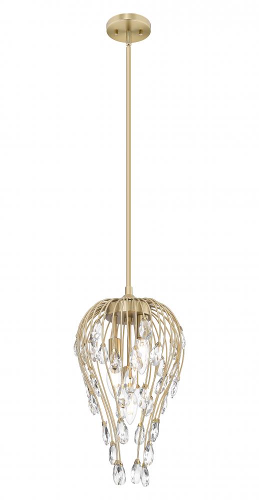 Embrace the botanical motif of this glam three-light pendant, an extraordinary luminaire featuring open metalwork with modern gold metal construction. Exquisite crystal pieces emulate buds capping stems as they radiate soft lighting and exude pure luxury. This dimmable light fixture makes itself at home in bedrooms, dining spaces, hallways, and living rooms.