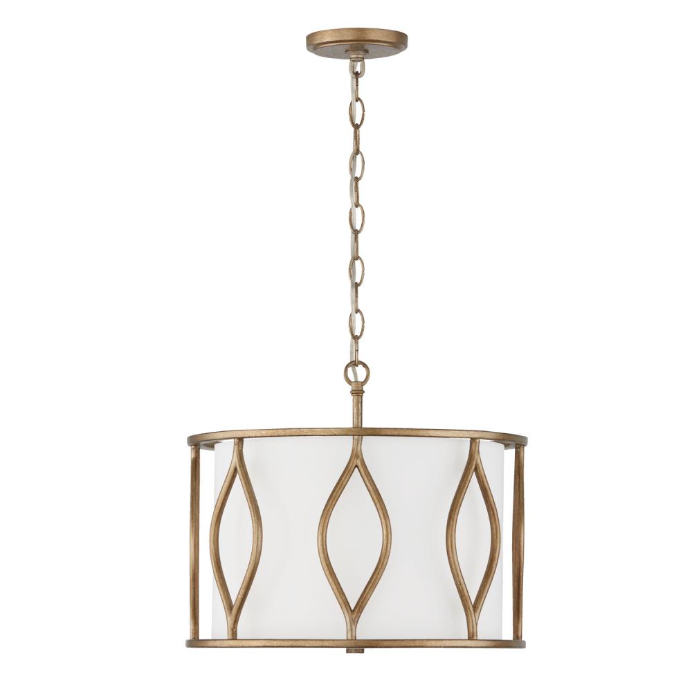 Add a layer of luxury to any space with the statement-making Cohen Dual Mount. Whether hung as a pendant or semi-flush, the curved, open columns frame the fabric shade, creating a sophisticated luminaire. The white glass diffuser's tailored look adds a soft glow to any space, while the handcrafted Mystic Luster finish creates subtle shimmer and texture.