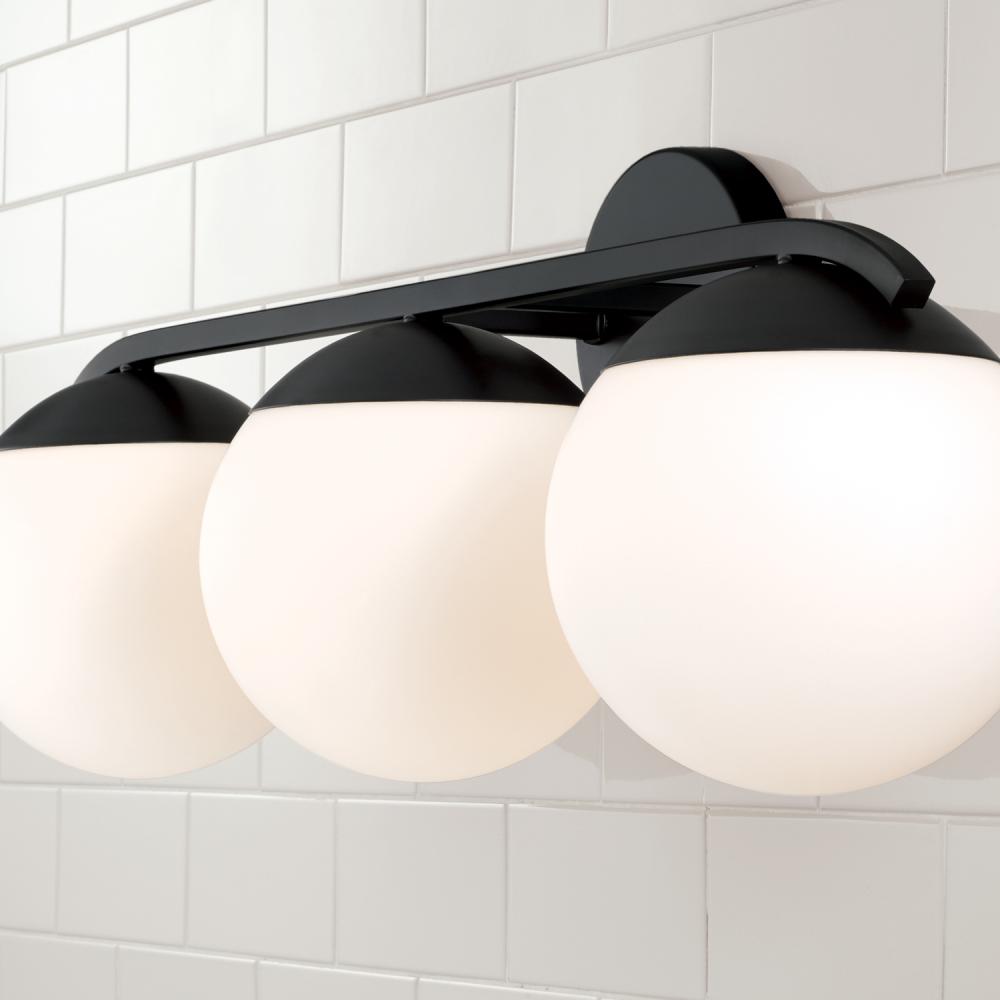 Crafted with circular forms and soft white glass, the Oliver 3-Light Vanity brings effortless glamour to any powder room. The curved arms and accents evoke elegant style, while the Matte Black finish creates a sophisticated contrast.