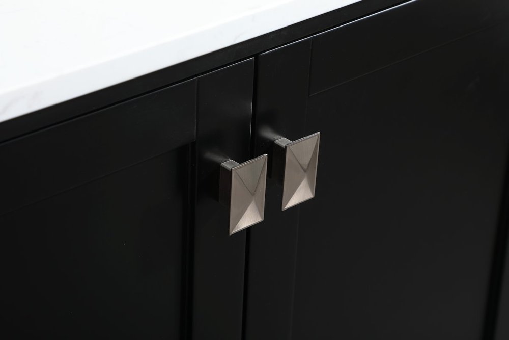 Never compromise beauty--the Irene collection stunning vanity in this finish will add lovely sophistication and complement any bathroom or powder room, while utilizing its charm and function to provide you with ample storage spaces. Brushed nickel pulls gently adorn the minimalist cabinet doors and drawers at the base, allowing for you to store away your bathroom essentials. The calacatta engineered marble countertop, porcelain undermount sink, dignified subtle engravings on the side edges, and squared legs all come together to create contemporary beauty. Work with your space, and design a beautiful room, no matter the size. Comes with a matching backsplash to help protect your bathroom wall.