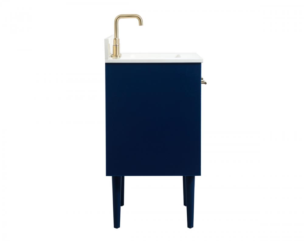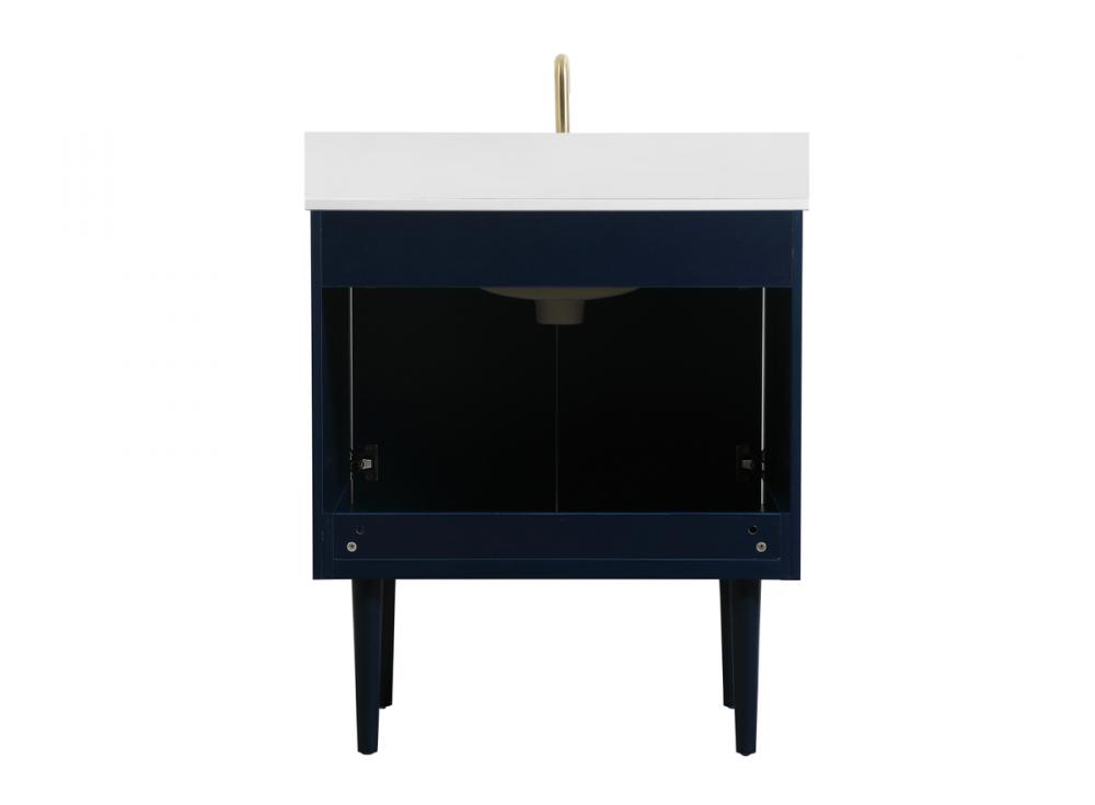Delve into a world of minimalistic fashion and contemporary styling with this midcentury modern vanity. The clean lines anchors the design, while the straight tapered cylinder legs add subtle interest. Bar pull handle adorns the soft closing door hiding the base of the rectangular porcelain sink and letting you store your bathroom necessities and toiletries. Whether you want to use this as a floating vanity or a freestanding vanity, the choice is yours. The durable ivory white engineered marble countertop complements the manufactured wood base vanity and is built to last. Comes with a matching backsplash to complete the look and protects your wall.