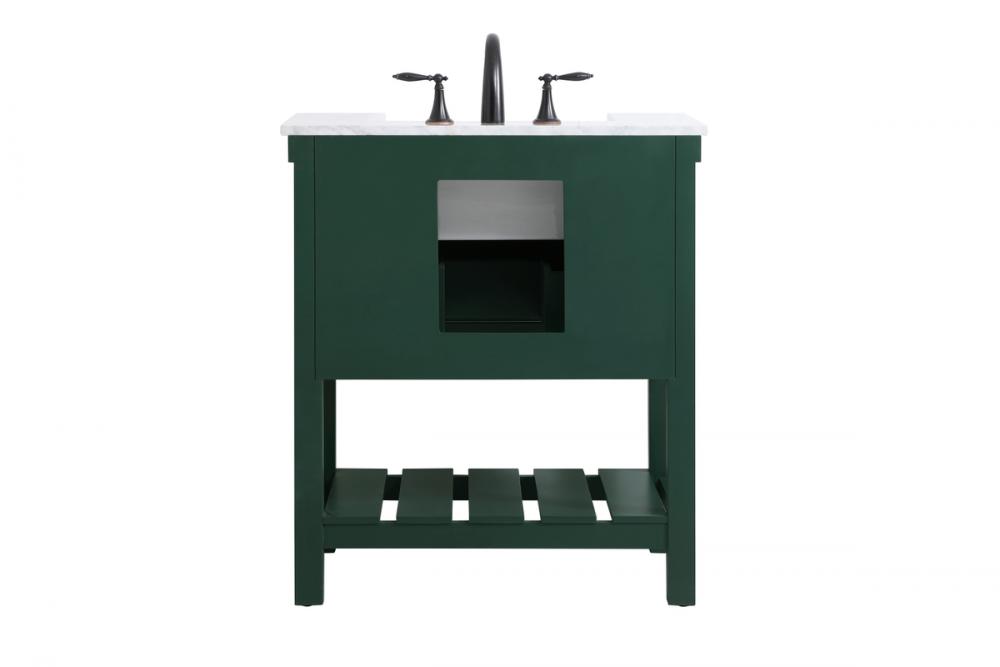 Make the most of your space with this farmhouse style bathroom vanity. Complements well with its beautiful finish, carrara white marble countertop, and the contemporary slender handle bar that sits on the functional drawers with soft closing mechanism, allowing you to store an assortment of bathroom essentials. The lower shelf makes it the perfect space to hold new towels for your guests. This stylish vanity ensures both form and function in your bathroom for you and your guests.