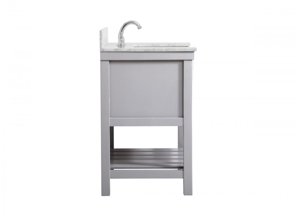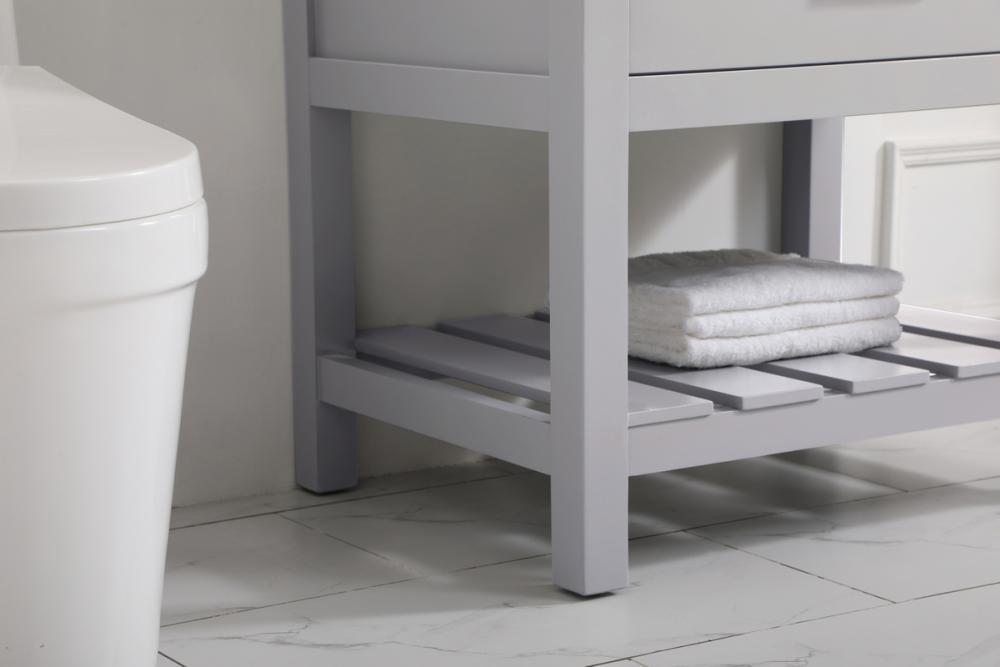 Make the most of your space with this farmhouse style bathroom vanity. Complements well with its beautiful finish, carrara white marble countertop, and the contemporary slender handle bar that sits on the functional drawers with soft closing mechanism, allowing you to store an assortment of bathroom essentials. The lower shelf makes it the perfect space to hold new towels for your guests. This stylish vanity ensures both form and function in your bathroom for you and your guests. Comes with a matching backsplash to complete the look and protects your wall.