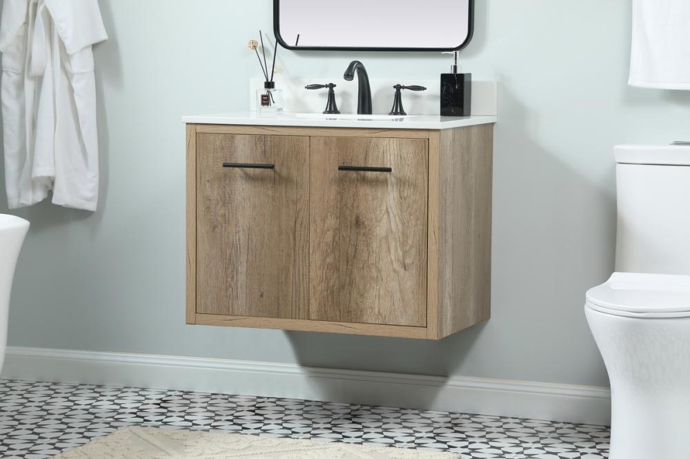 Vanity can be wall mounted without the solid wood legs or install as a freestanding unit