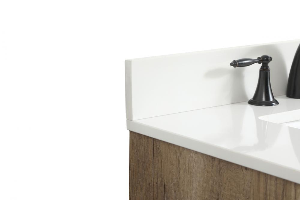 Crafted with durable engineered marble top in ivory white finish and comes with a matching backsplash that measures 30"l x 0.71"w x 3.94"h