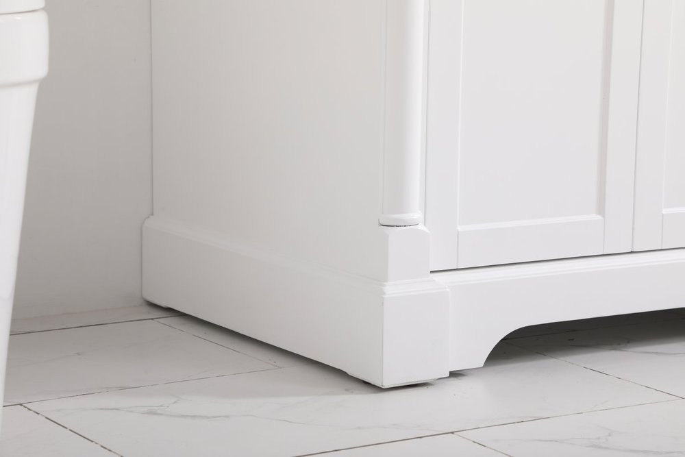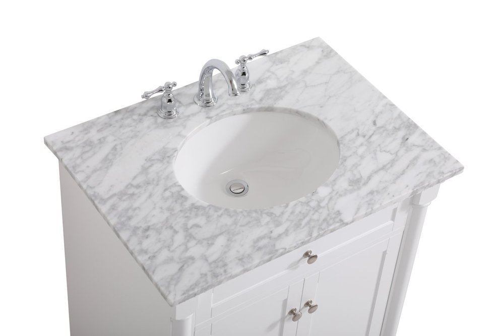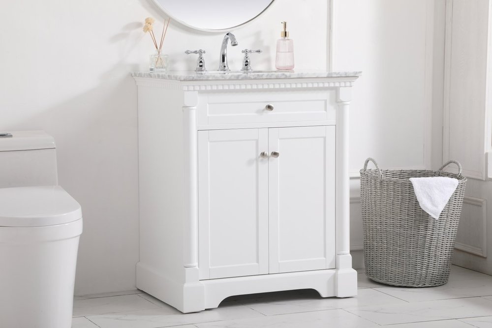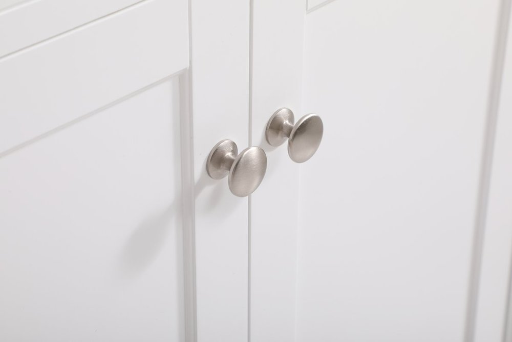 Make the most of your space with this traditional style bathroom vanity. Its traditional style is able to complement many aesthetics, natural marble countertop, and the round brushed nickel knobs that sits above the soft closing doors, allowing you to store an assortment of bathroom essentials. The lower shelf makes it the perfect space to hold new towels for your guests. This compact vanity ensures both form and function in your bathroom or powder room for you and your guests.