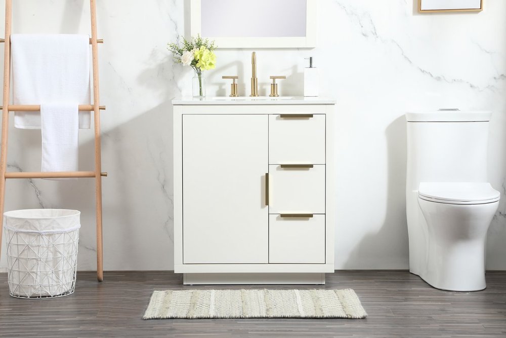 The Blake collection vanity cabinet will be a modern furniture statement piece in your bathroom. Our color combination creates a calming atmosphere in the room. The gold handles bring a vibrant touch to balance the vanity. With the simplistic clean lines, the cabinet catches eyes with its beautiful smooth surface. Open the cabinet doors to store what you desire and make use of the spacious area. Gently close the door and the soft closing glides will quietly closes the door. To top it off, the calacatta engineered marble adds a luxury and modern finish to the durable stonetop.