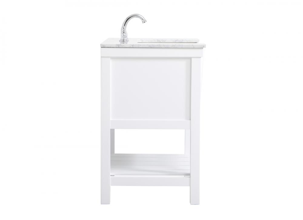 Comes with an apron porcelain sink and durable marble stone top in carrara white finish