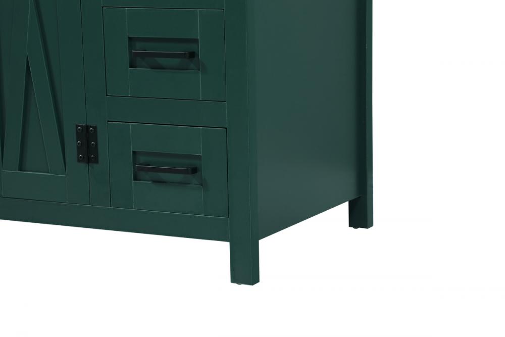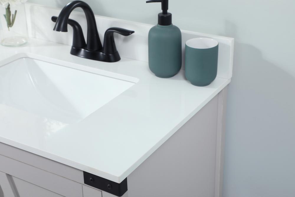 Reminiscent of barn doors, the two door cabinet and four drawers adds both stylistic charm and function with its plethora of storage options for all your bathroom essentials. Whether for your bathroom or the guests', everyone will marvel at its classic look for traditional and farmhouse aesthetics. A slab of engineered marble rounds out the piece up top, as well as the porcelain under mount sink and predrilled faucet holes. This vanity arrives fully assembled.