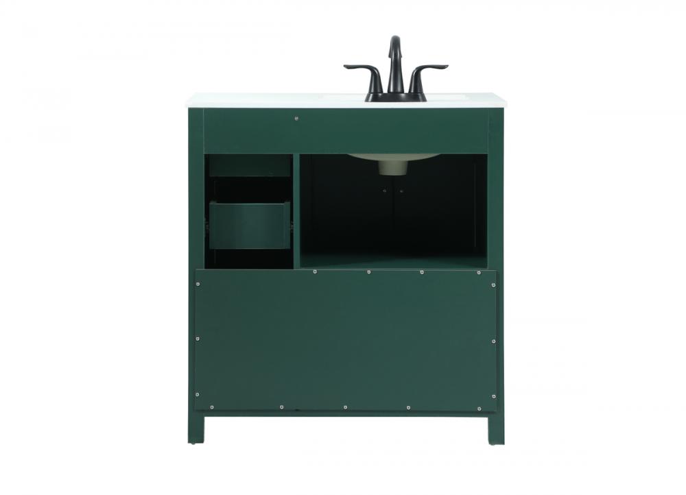 Crafted with durable engineered marble top in ivory white finish