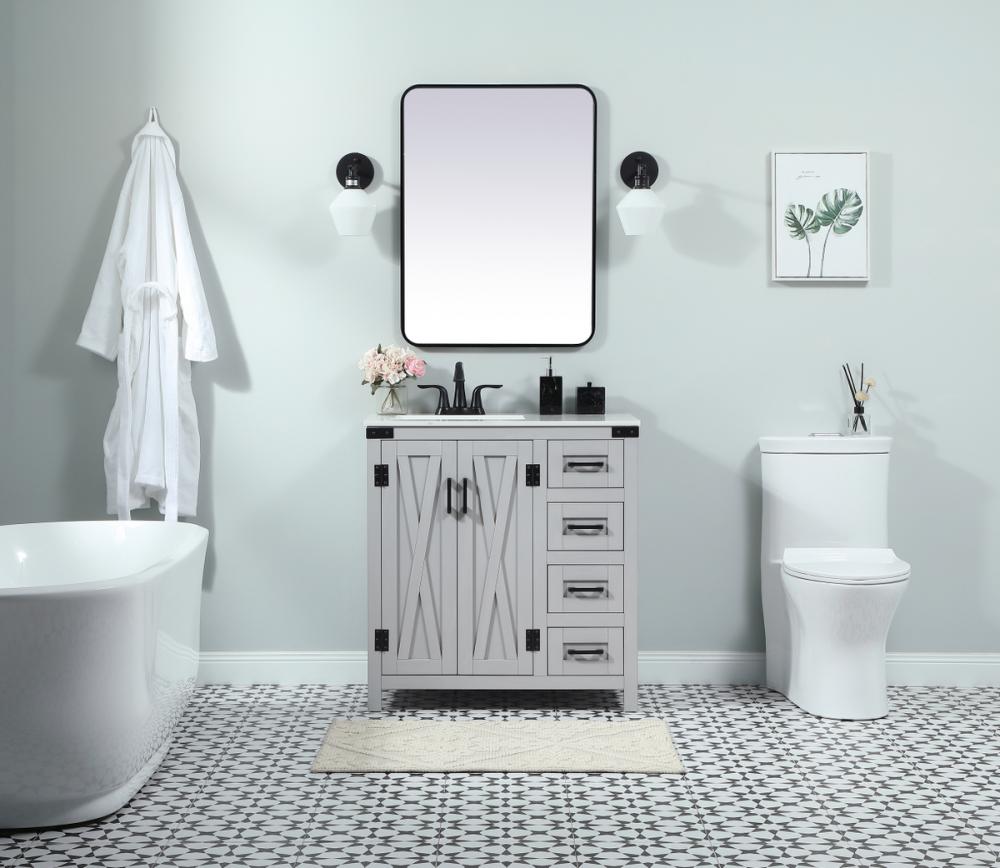 Reminiscent of barn doors, the two door cabinet and four drawers adds both stylistic charm and function with its plethora of storage options for all your bathroom essentials. Whether for your bathroom or the guests', everyone will marvel at its classic look for traditional and farmhouse aesthetics. A slab of engineered marble rounds out the piece up top, as well as the porcelain under mount sink and predrilled faucet holes. This vanity arrives fully assembled.