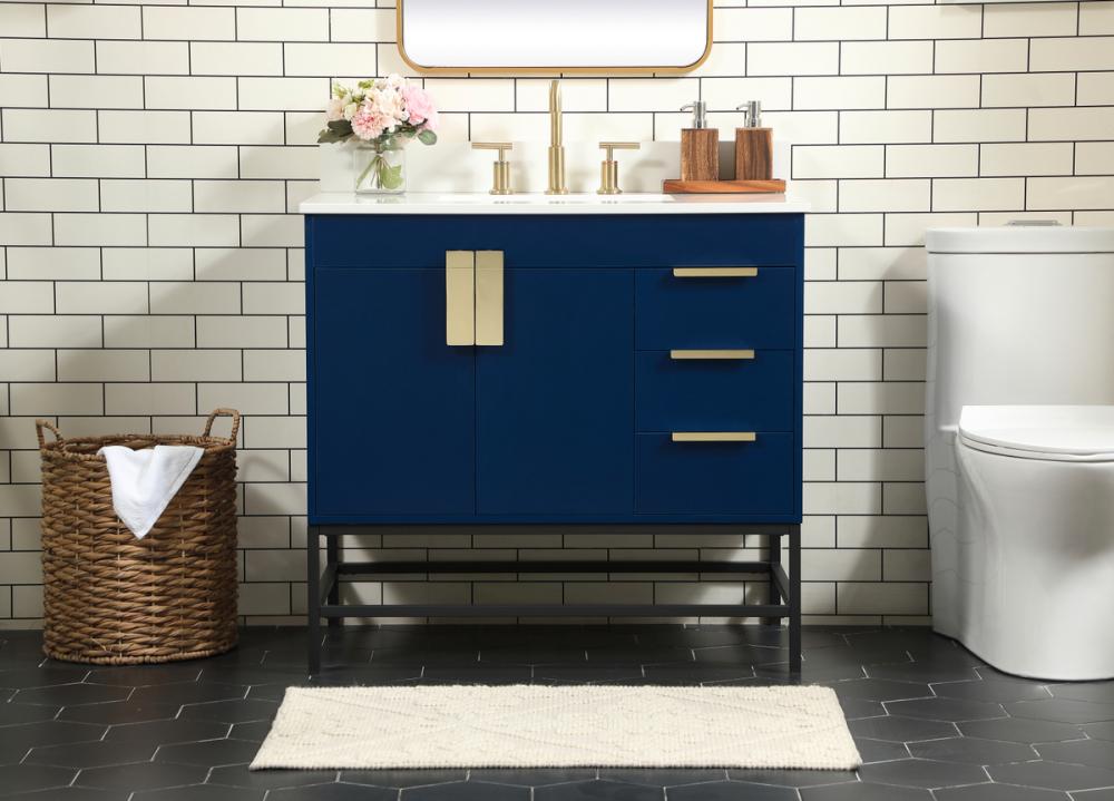 This vanity is a sleek-looking piece of bathroom furniture that is easy to incorporate into your design scheme. The cabinet features a smooth door panel with an oversized steel handle and soft close hinges provide ample room for accessories. Constructed of engineered wood, the powder-coated metal rod legs are an urban industrial look that we love. Minor assembly of the metal legs needed to get this vanity up and running. Comes with a matching backsplash to complete the look and protects your wall.
