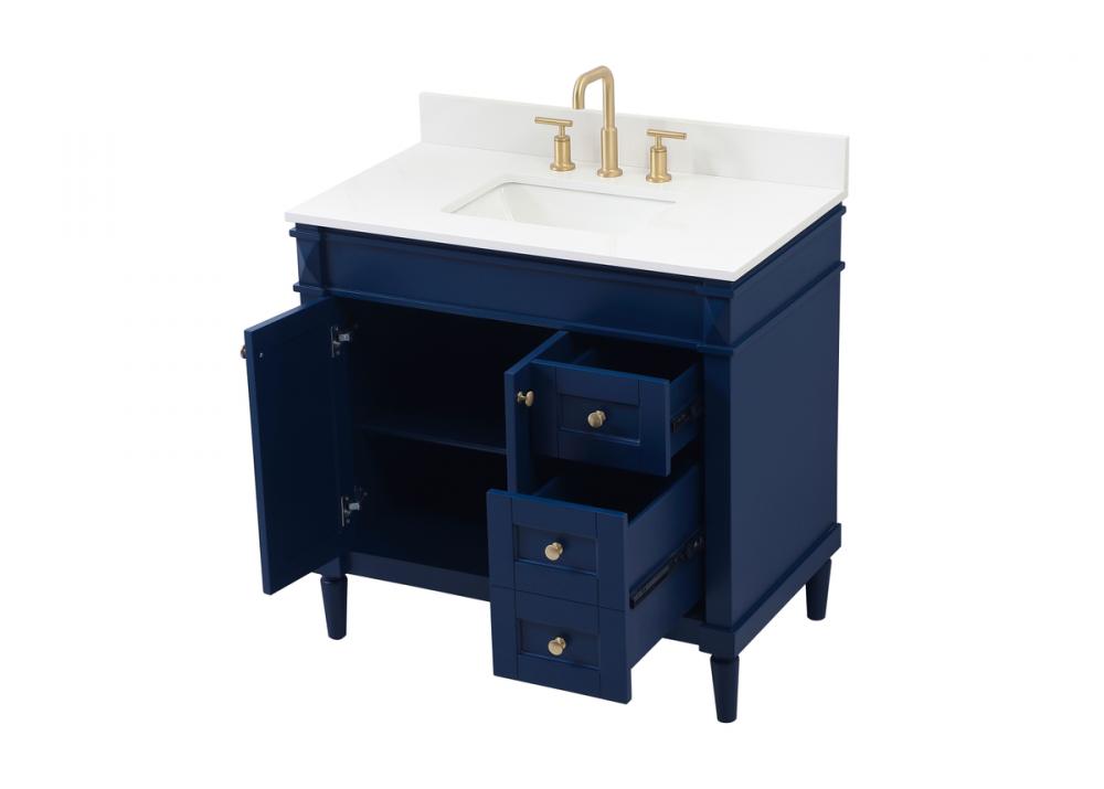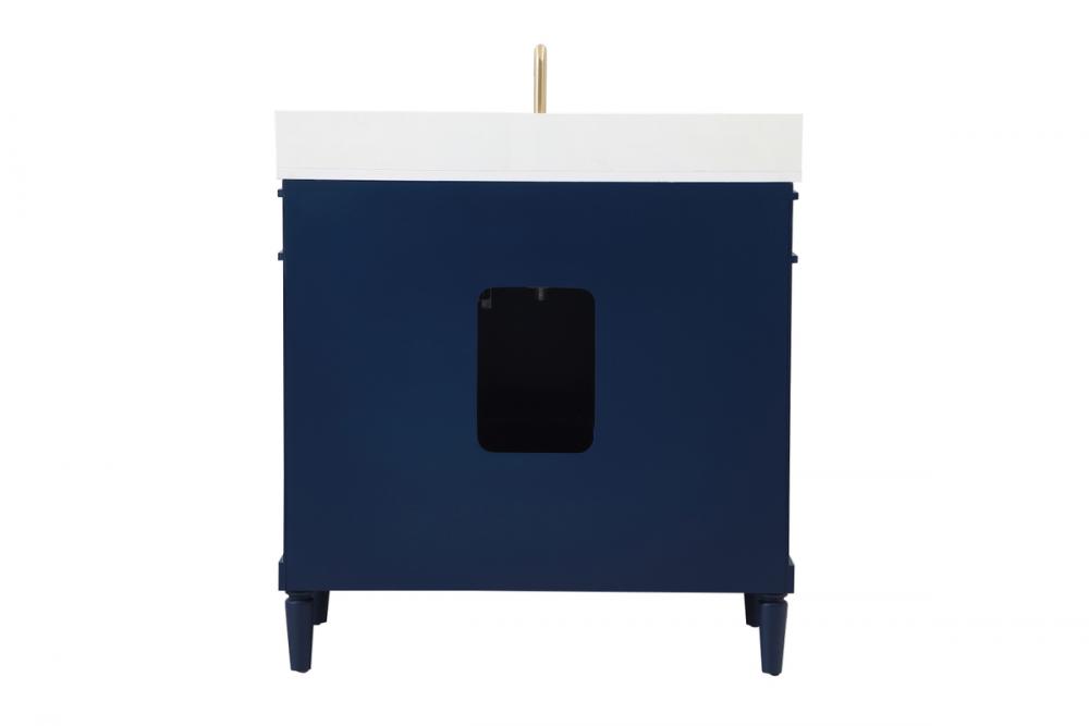 This transitional vanity is a beautiful piece of bathroom furniture will look amazing in your design scheme. The cabinet features a shaker style smooth door panel with simple round knobs and soft close hinges provide ample room for accessories. Packed with multiple side drawers with soft close glides for added comfort and full access to bath supplies. Convenient deep drawer stores all of your tall bath essentials. Constructed of engineered wood and solid wood legs with hand painted finish. The durable engineered marble countertop is a versatile material in an ivory white finish. Minor assembly of the legs needed to get this vanity up and running. Comes with a matching backsplash to complete the look and protects your wall.