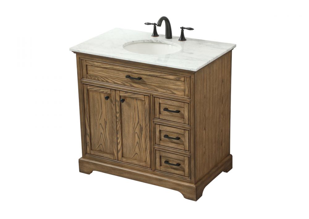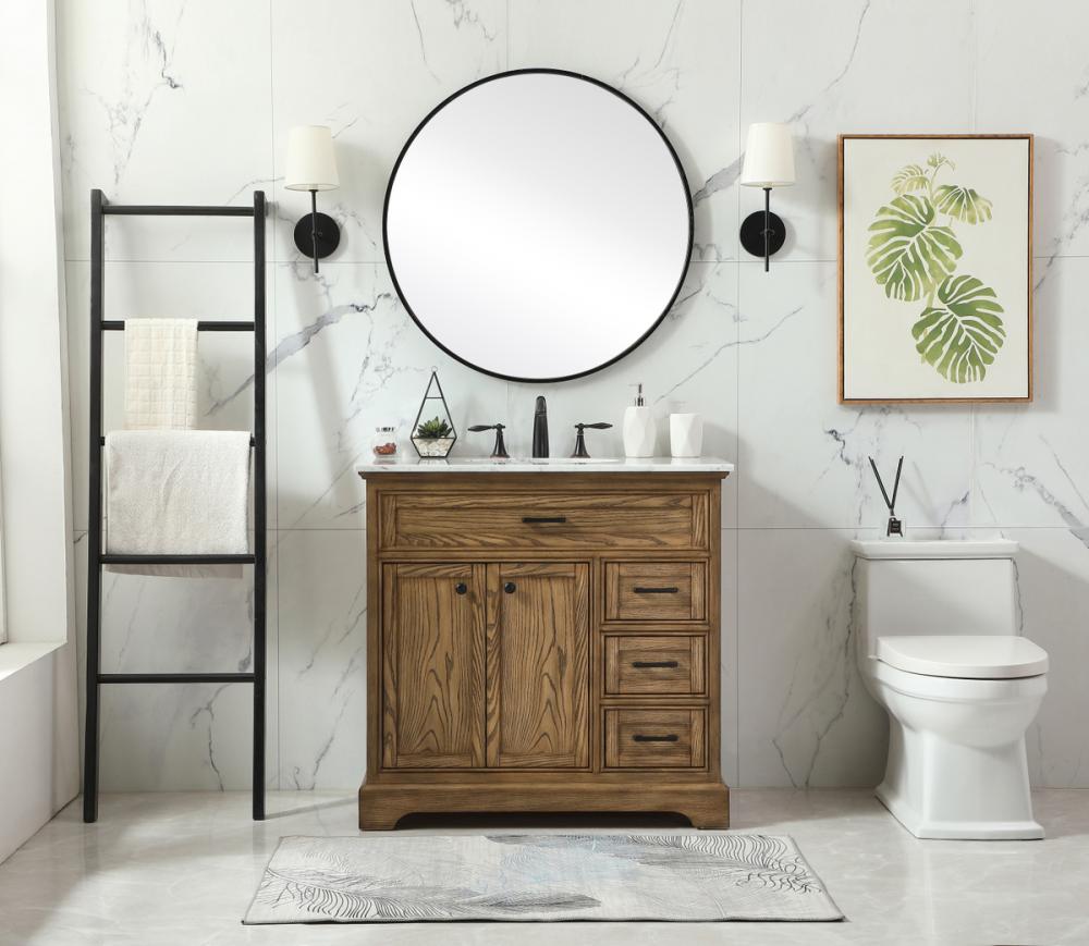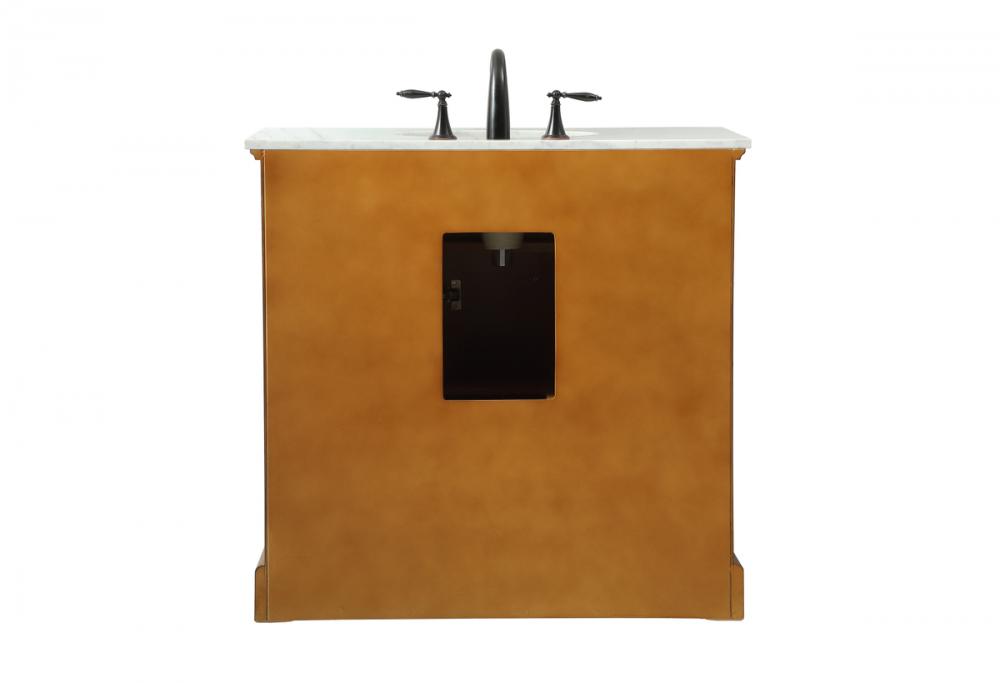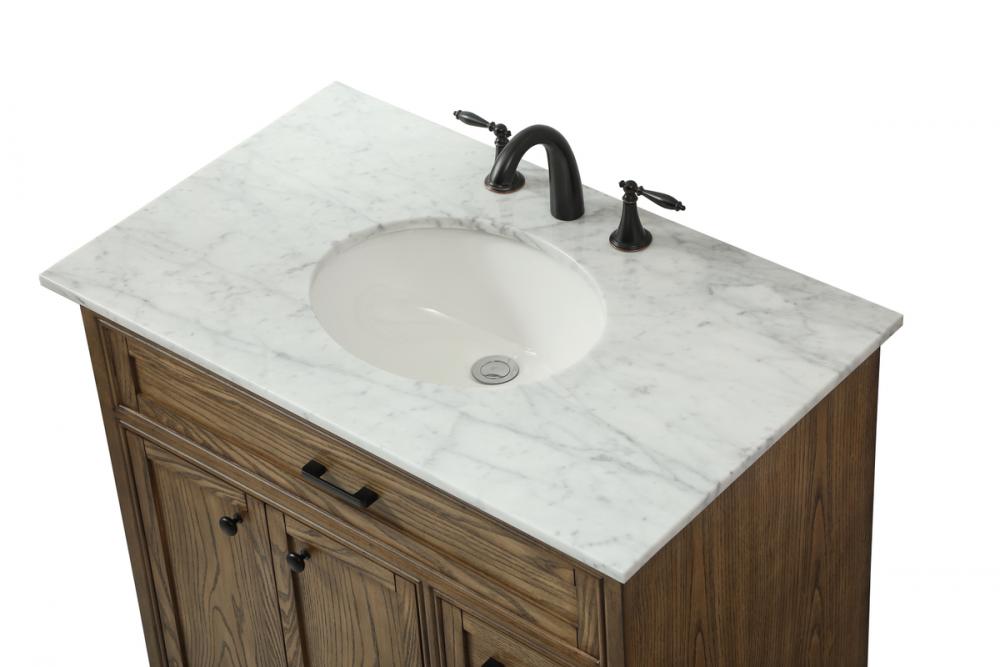 Clean lines and classic form can truly add a fresh look to your bathroom or powder room. This vanity, complemented by round hardware, will surely charm you with its confident style and subtle charisma. This vanity can store all of your bathroom toiletries, from extra towels to make up essentials. The vanity is crowned with carrara white marble and includes a porcelain undermount sink--adding both function and form that will truly amaze.