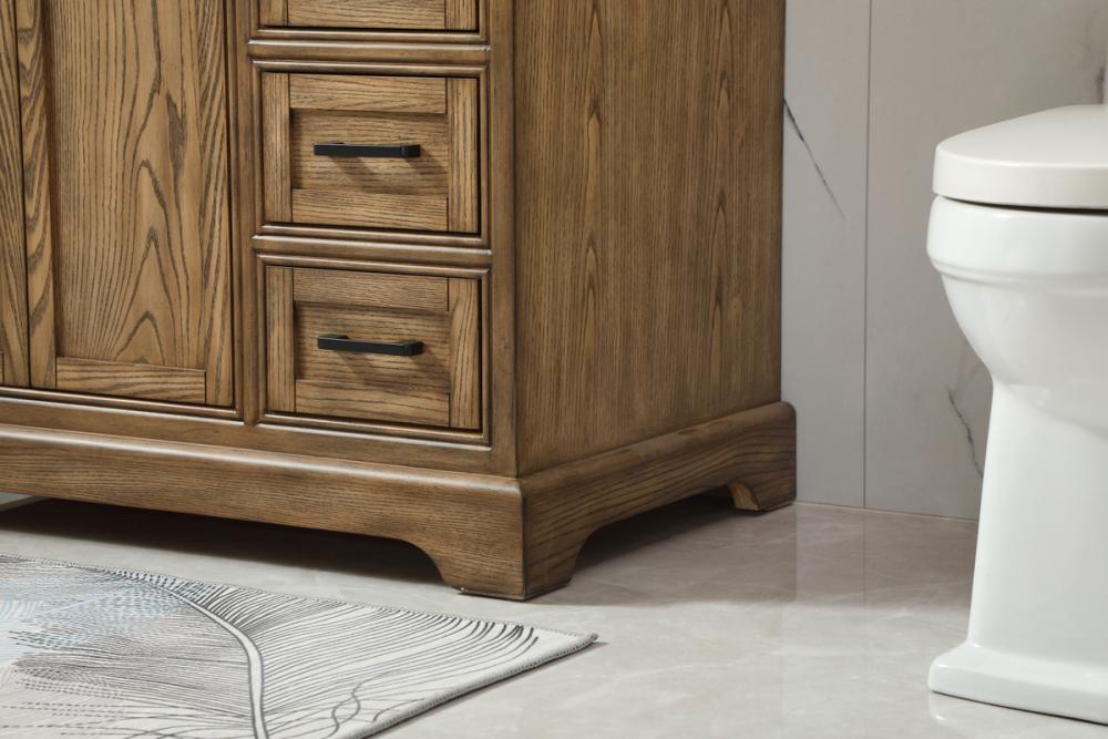 Comes with an undermount porcelain sink and a carrara white marble countertop