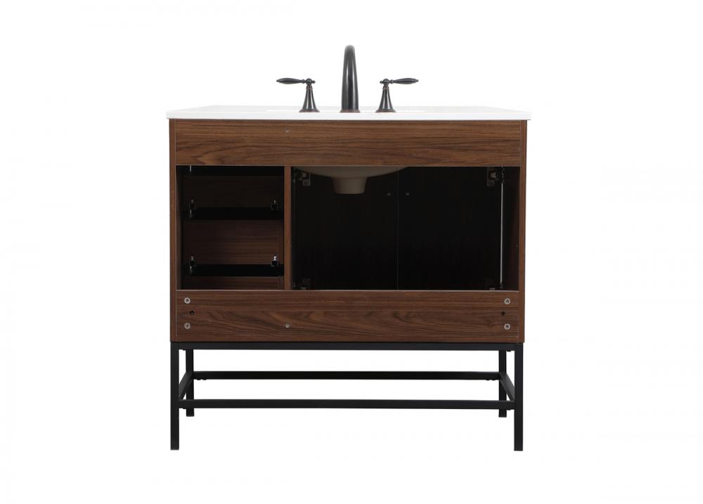This vanity is a sleek-looking piece of bathroom furniture that is easy to incorporate into your design scheme. The cabinet features a smooth door panel with an oversized steel handle and soft close hinges provide ample room for accessories. Constructed of engineered wood, the powder-coated metal rod legs are an urban industrial look that we love. Minor assembly of the metal legs needed to get this vanity up and running.