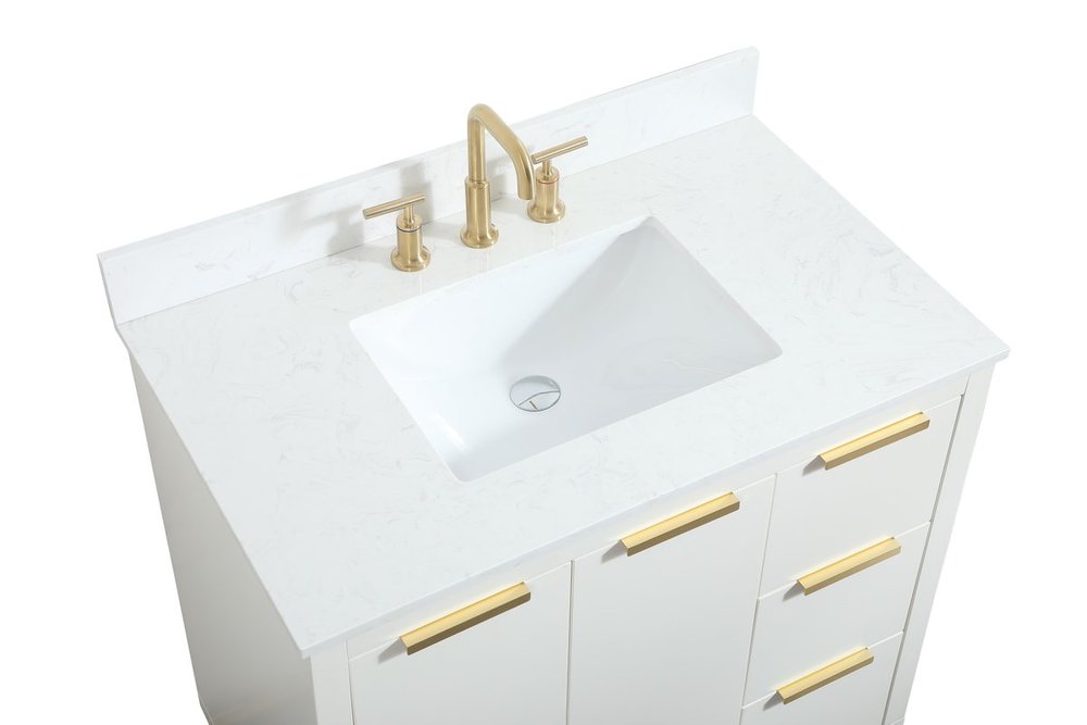 The Blake collection vanity cabinet will be a modern furniture statement piece in your bathroom. Our color combination creates a calming atmosphere in the room. The gold handles bring a vibrant touch to balance the vanity. With the simplistic clean lines, the cabinet catches eyes with its beautiful smooth surface. Open the cabinet doors to store what you desire and make use of the spacious area. Gently close the door and the soft closing glides will quietly closes the door. To top it off, the calacatta engineered marble adds a luxury and modern finish to the durable stonetop. Comes with a matching backsplash.