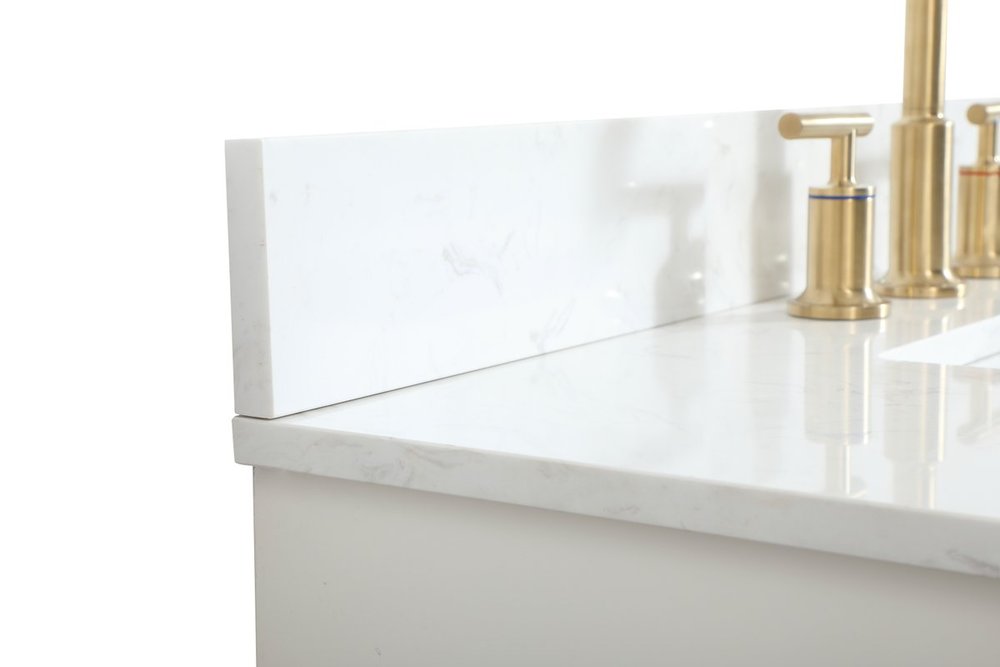Comes with an undermount porcelain sink and a durable calacatta engineered marble stone top
